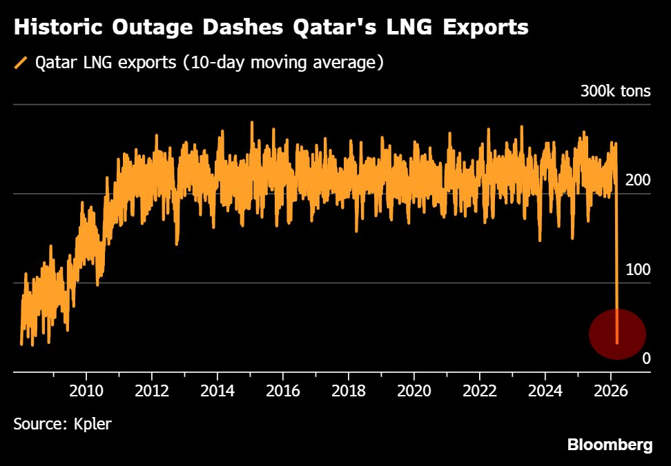 В общем, на графике катарский экспорт СПГ. На прошлой неделе катарский завод в Рас-Лаффане решил, что хватит. И перестал работать.