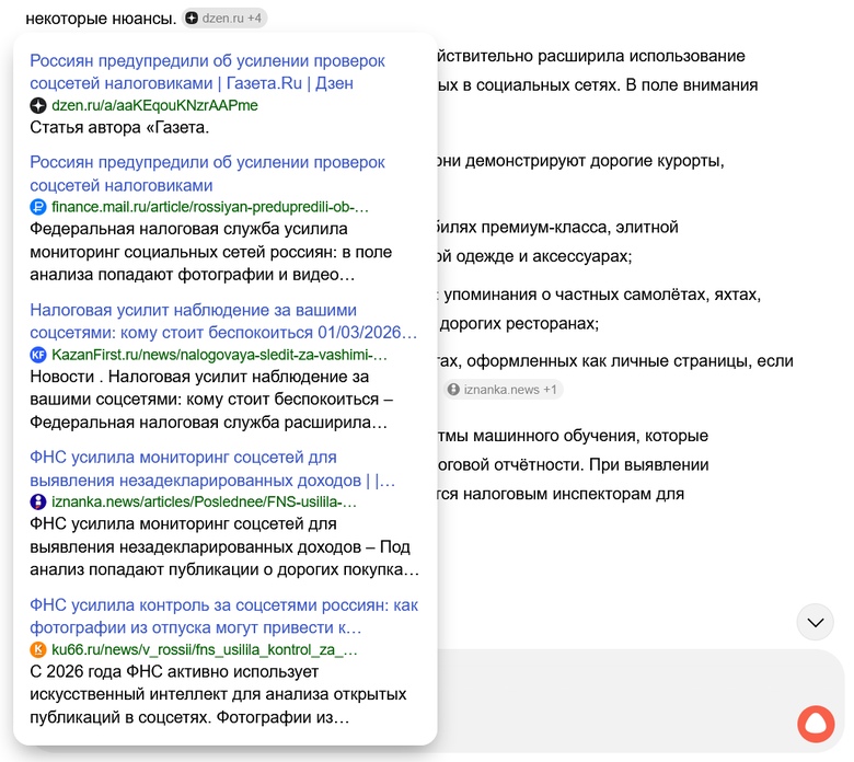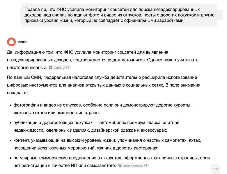 ... и под анализ попадают фото и видео из отпусков, посты о дорогих покупках и другие признаки уровня жизни, который не совпадает с официальными заработками?