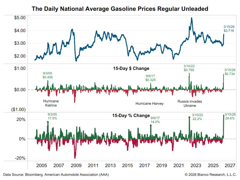 3,718$ – такова средняя цена галлона бензина в США. Снизу приведены изменения 15-дневные. В номинале и в процентах. Суть в том, что это рекордный ценовой импульс за последние 22 года – 25% за полмесяца. А американцы к бензину весьма трепетны. У всех RAM 1500. Всё по-взрослому.