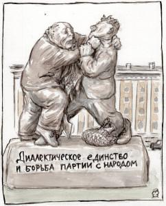 Как ни странно, недовольство сложившимся статусом-кво формировалось в первую очередь внутри самого дворянства, которому менее всего подобало возмущаться и протестовать. Однако именно дворяне первыми выступили против существующего порядка вещей. Именно они выводили полки на Дворцовую площадь, составляли костяк народовольцев, населяли всевозможные бунтарские кружки, партии, инициативные группы. РСДРП, несмотря на затесавшееся название «рабочая», была по руководящему составу чисто дворянской. Внутри самого режима родилась и созрела его похоронная команда. Ульянов, Чичерин, Куйбышев, Орджоникидзе, Крестинский, Дзержинский, Менжинский, Бокий, Aрманд, Коллонтай, Каменев, Тухачевский, Бонч-Бруевич, Шапошников, Лазо, Фрунзе… – несть им числа. Можно сказать смело, что во главе всех революционных потрясений 1917-го года стояли именно дворяне. Такое положение дел будет логично и объяснимо именно с точки зрения диалектики.