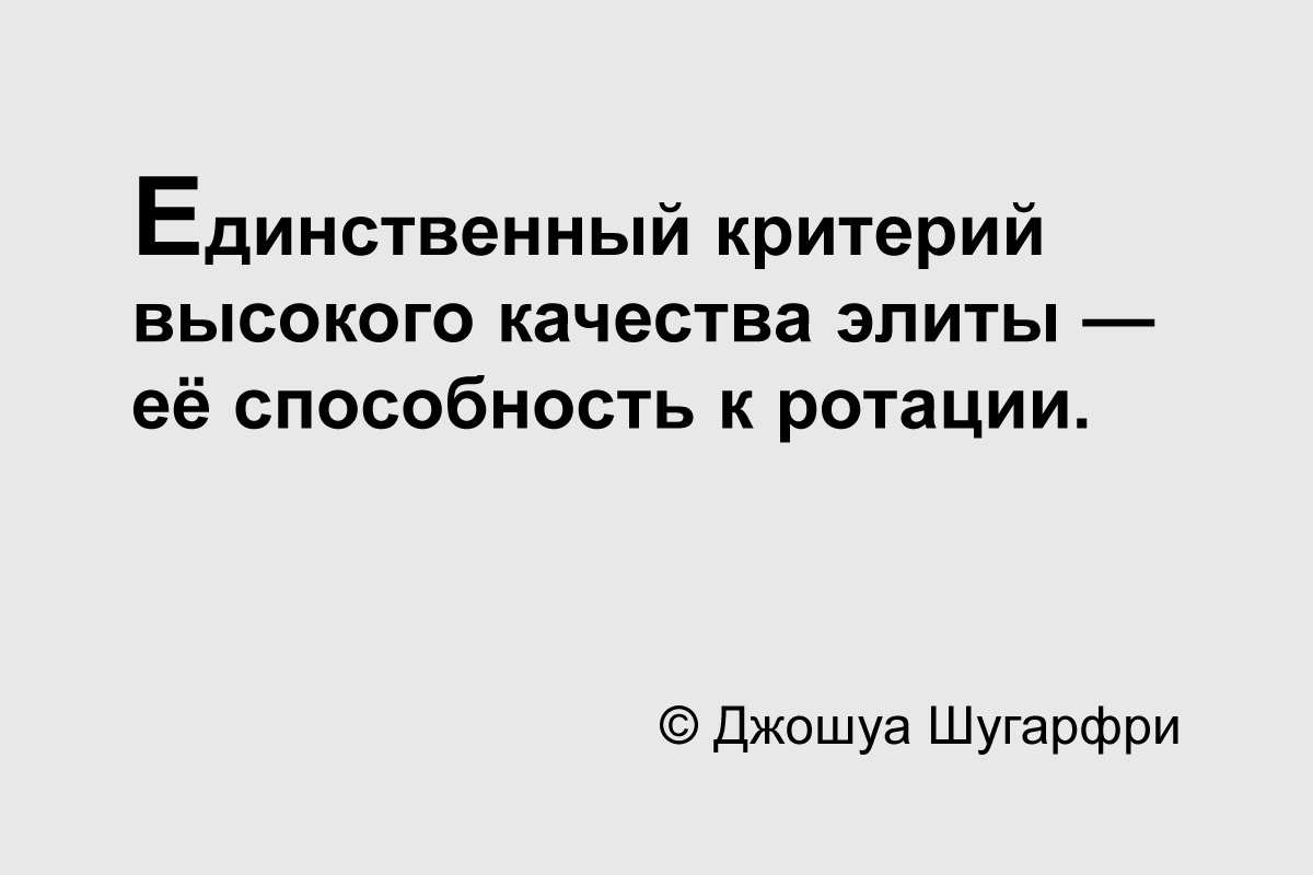 Типа, для качества элиты неважно, насколько успешно они решают, скажем, проблему энергоголода или текущей войны - важно, чтобы они вовремя сменились.