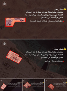 🔹 Поэтому всех граждан, резидентов и сотрудников просят немедленно покинуть эти районы и без задержек переместиться в безопасное место.