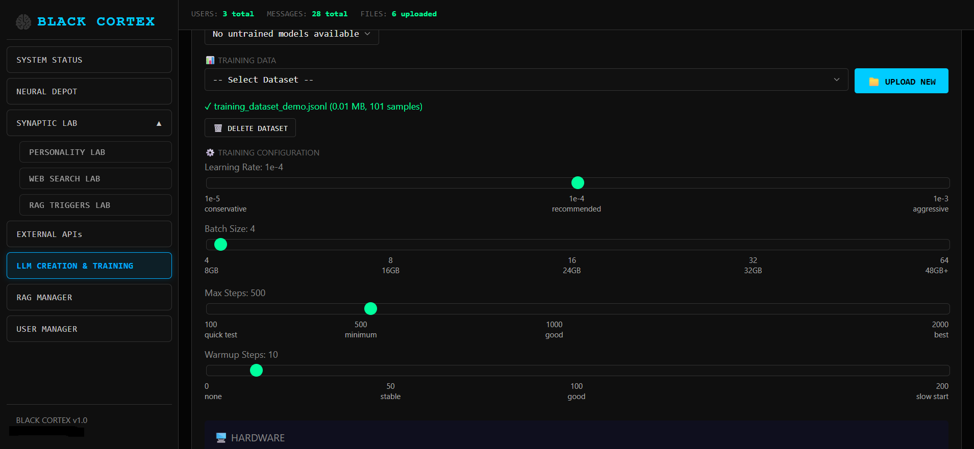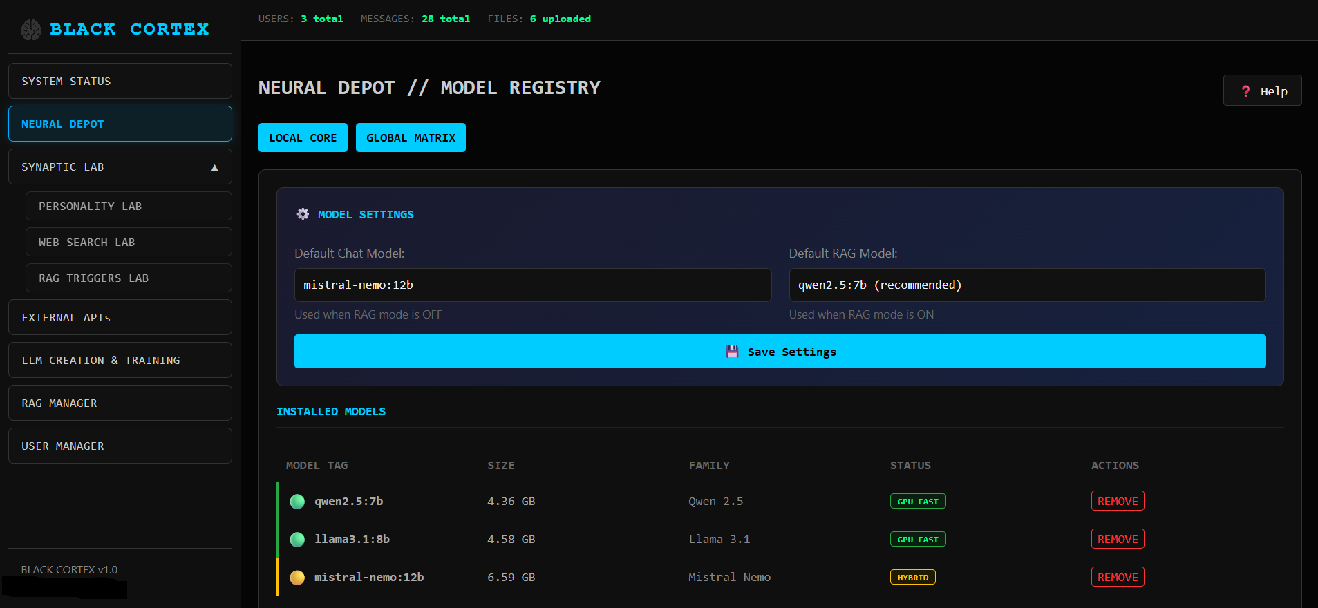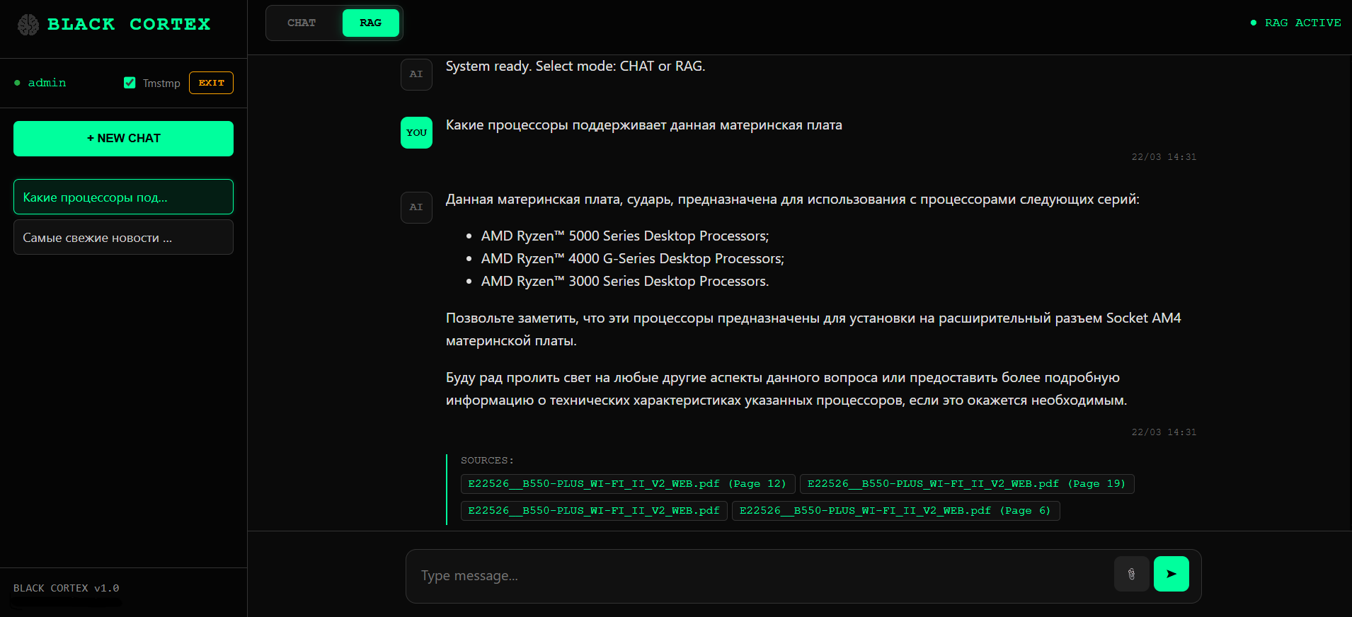 LLM VibeCheck был полностью переработан и такое название перестало существовать. Теперь это два продукта: BlackCortex Lite для домашнего использования, под капотом Ollama с поддержкой AMD через Vulkan бэкенд, так что владельцы красных карточек наконец в деле. И полноценная RAG платформа BlackCortex AI для запуска в Docker. Почему BlackCortex? А, вот хрен его знает, может «жизни черных кортексов тоже важны» (улыбка тролля)