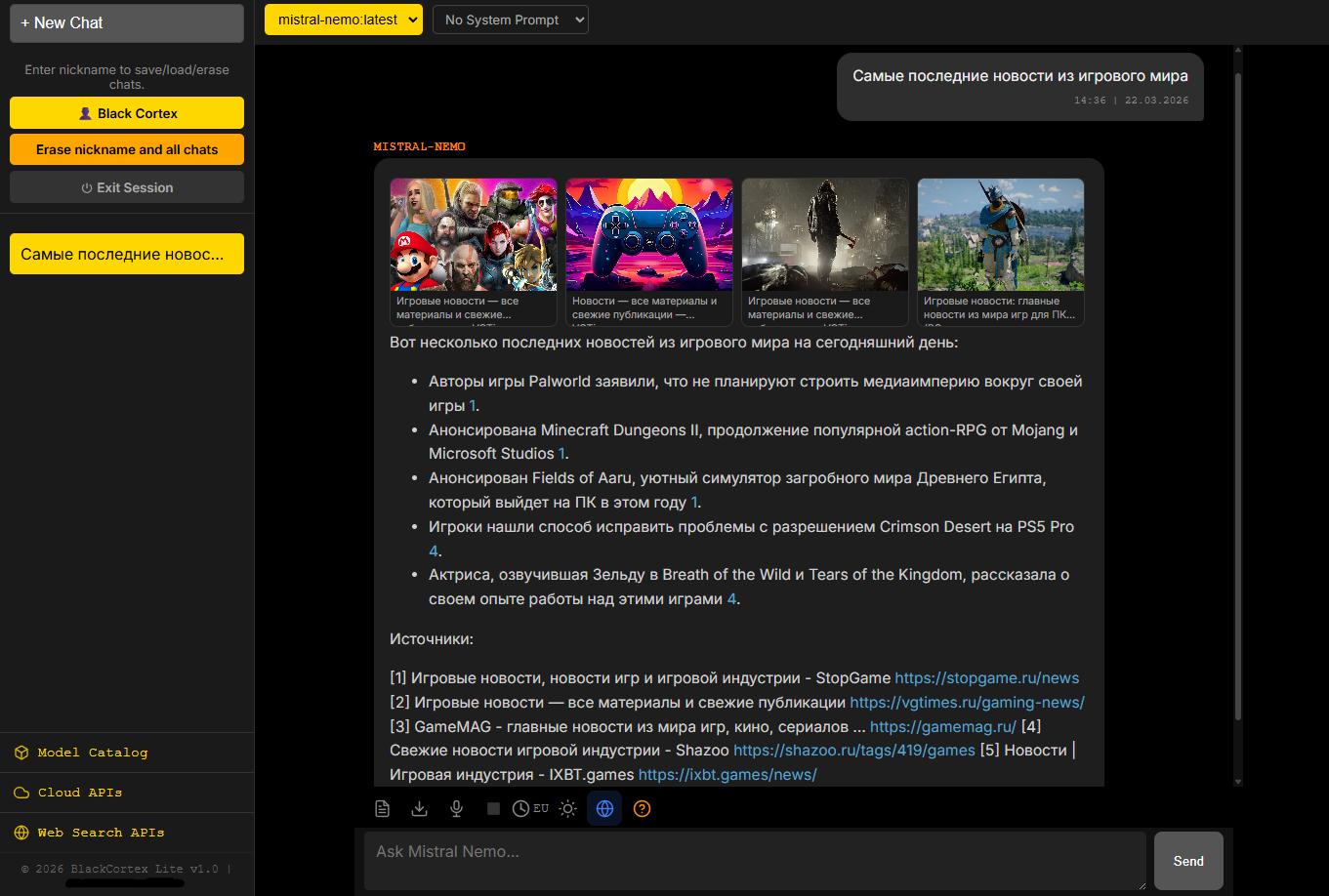 Серверная версия BlackCortex AI это уже для организаций, простому пользователю она избыточна. https://vibe-coder.itch.io/ https://github.com/Creatomico/blackcortex-lite на подходе версия для Linux, но я один человек и физически всё не успеваю, так что терпение камрады.