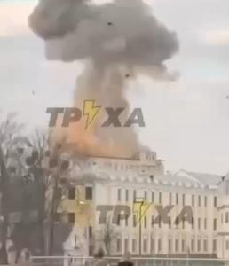 Отдельные крупные украинские каналы утверждают, что были атакованы здания СБУ в городах на западе Украины. На видео подтвержден как минимум один прилет по офису Винницкого филиала Службы безопасности.
