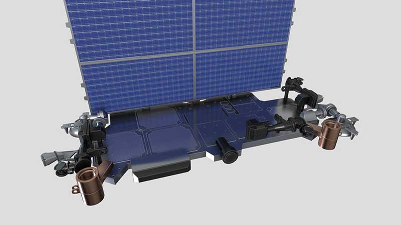 Габариты: длина 3,2 м, ширина 1,6 м, высота 0,2 м. Типичная масса КА 260 кг. Из руководства пользователя Falcon 9 мы можем оценить, что общая доступная высота для стопки из 60 спутников составляет 6,7 м. Причем эти цифры наполовину экспертные.