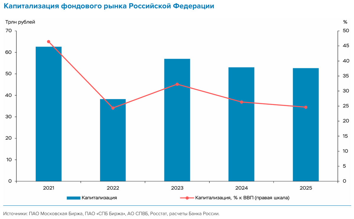 Как мы помним, имеет место быть поручение Владимира Владимировича Путина об удвоении капитализации российского фондового рынка до 66% от ВВП к 2030. Пока вот так.