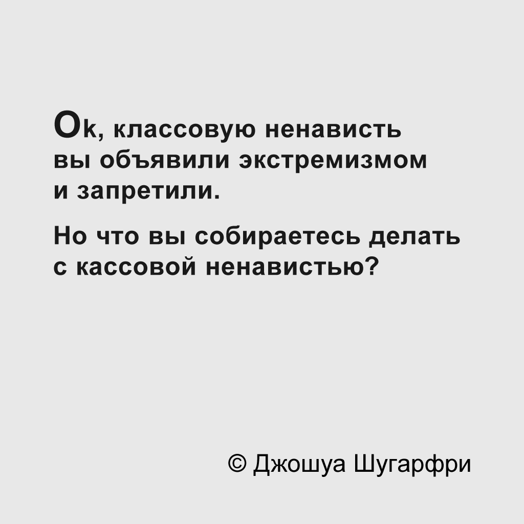 И что-то людям подсказывает: сплотившись и начав зверски самоотверженно работать, те самые люди не получат ничего, кроме дальнейшего роста благосостояния граждан люксовой комплектации.