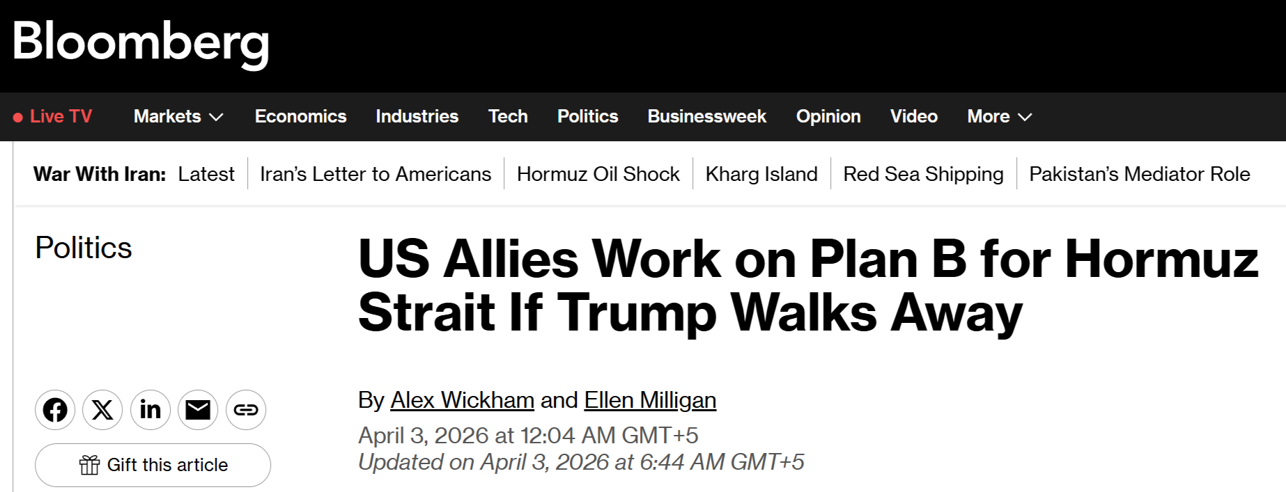 Агентство писало, что союзники США готовят план по Ормузскому проливу без Вашингтона.