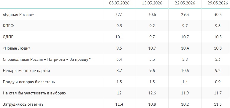 Рейтинг политических партий согласно опросам ВЦИОМ (в январе 2026 года у ЕР было - 34,8%) [1, 2]