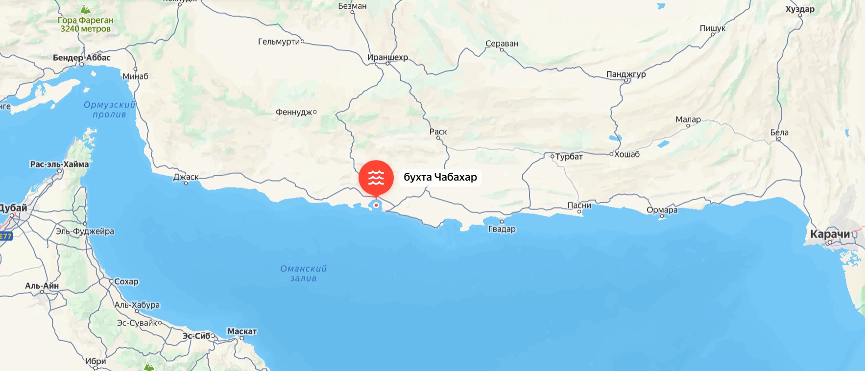 Город Конарак с аэродромом (единственным на 600 км в округе) находится рядом с меткой, немного западнее и на общем фоне этот район - более или менее "подготовленное", приемлемое и обоснованное место для высадки десанта, в том числе крупного. Как ни посмотри, а все же лучше, чем вглубь территориальных вод Ирана лезть, чтобы навеки там и остаться.