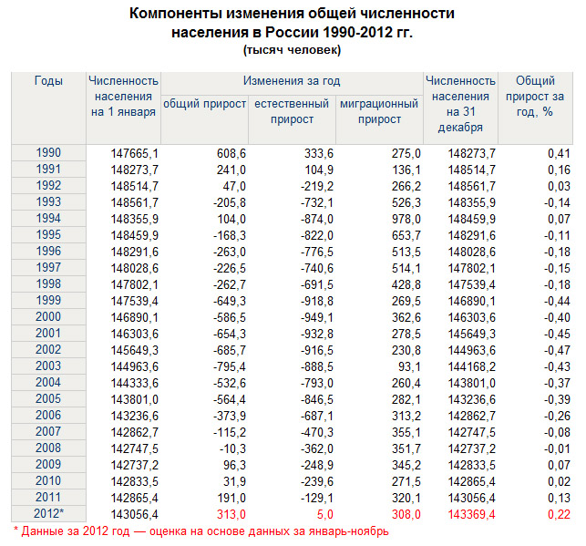 Потом - небольшой рост, тысяч по 200 - 300 в год, сейчас 143, 5 млн.