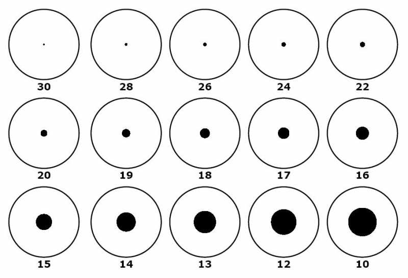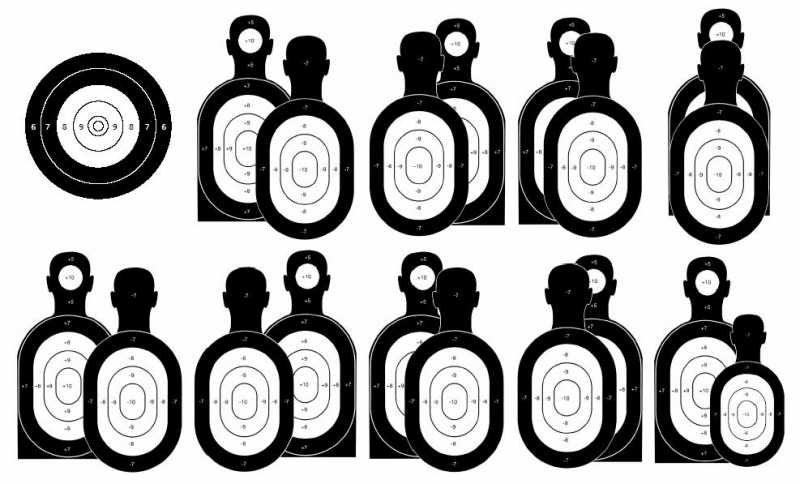 Стрелок должен выбрать и поразить пять точечных целей, по выстрелу на круг. Чем меньше пораженная цель, тем выше балл за нее. Промах равняется нулю.