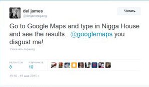 «Зайдите в Google Maps, наберите Nigga House и посмотрите результаты. Google, ты отвратителен!»