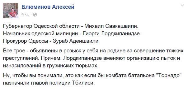 Губернатор Одесской области Михаил Саакашвили на заседании комиссии Госавиа жестко поссорился с главой службы Денисом Антонюком. Саакашвили обвинил Антонюка в том, что он обслуживает олигархические интересы монополиста авиарынка, после заседания комиссии Госавиа, где предоставляли разрешения на маршруты авиакомпаниям. «Меня интересует, чтобы люди летали туда и обратно дешевле. Там, где одна компания получает все рейсы, люди дешевле летать не могут. Вы своим решением привели к тому, что в Одессу прилетит в два-три раза меньше туристов», — заявил Саакашвили .