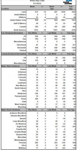 Общее количество оставшихся буровых в США сейчас составляет 848 шт. или 43.92% от максимума прошлого года (1 931 шт. буровых). Это новый абсолютный минимум с начала падения буровых! (прежний 'рекорд' составлял 857 шт.)