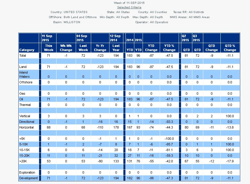 Williston: 71 шт. (минимум был 68 шт.), рост на 3 шт.;