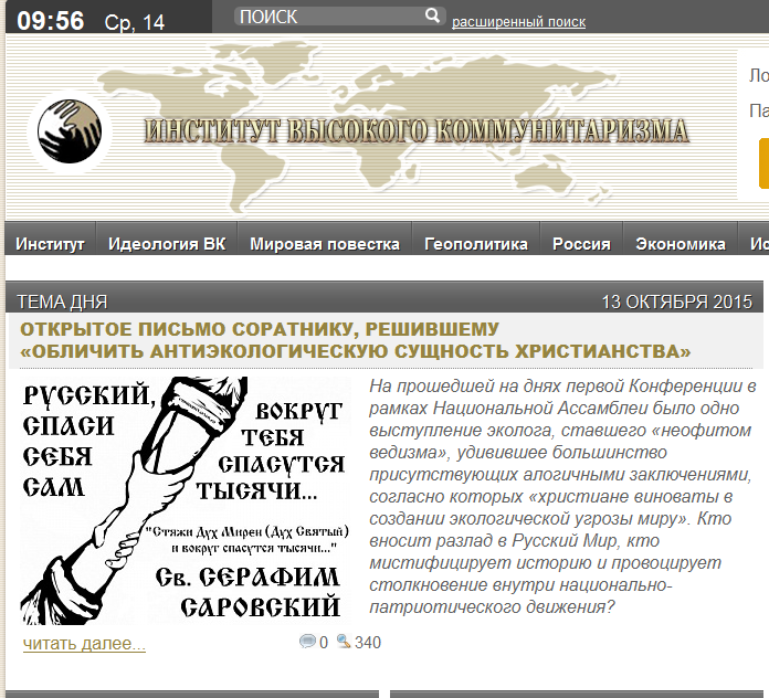 можно обсуждать и критиковать его за подбор материалов - да, можно упрекнуть в недостатке глубоких финансово-аналит-х материалов (как аргументов), недостатке иных политических и общественных движений, относящих себя к русскому миру. - ну так эт не его вина, это как раз свидельствует о педалируемом им тезисе: систематическое выхолащивание почвы для отечественных движений.