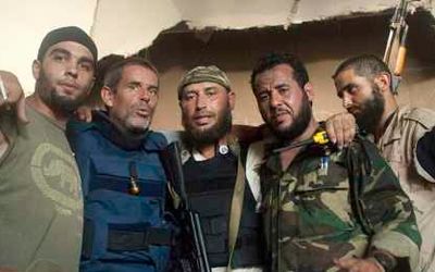 На этой фотографии мы видим его в Ливии (в синем бронежилете) вместе с руководителями Аль-Каиды: справа от него Махди аль-Харати (в чёрном бронежилете) и Абдельхаким Бельхадж (в камуфляжной куртке).