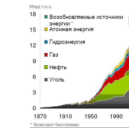 А эту картинку вы возможно уже видели в одном из постов этого журнала (столь же важном, на взгляд его автора). На ней запечатлен общий рост энергетического обеспечения человечества в то самое время, когда формировалось общее мировосприятие современного человека:
