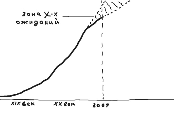 Проявляется эта зона психологической неадекватности, как вы уже поняли, в разной степени (в зависимости от ожиданий, сформированных на примере былой крутой экспоненты или на примере более умеренного роста двух последних десятилетий). Однако в любом случае она остается зоной психологически неадекватного восприятия ситуации, в которой оказалось современное, цивилизованное человечество.