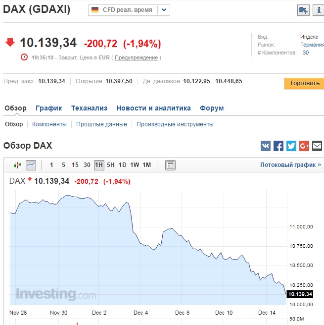 При повышении ставки доллар к евро вырастет, что будет негативно влиять на все мировые рынки. Ждет снижения. глубину сложно оценить, так как частично это уже заложено в котировки. Но из-за роста доллара к евро Дакс будет снижаться меньше, чем американский рынок.