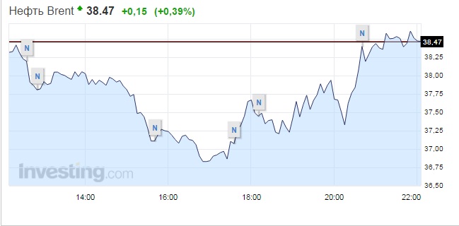 С утра снижалась, к вечеру подросла. В эту среду не только решение по ставке, но и выход данных по резервам и добыче. Так как буровые снижаются, то и добыча могла продолжить снижение, которое возобновилось за последнюю отчетную неделю. Ну и резервы могут также снизиться как и на прошлом. Это сыграет на повышение нефти до 40-42. Если же и ставку понизят и с отчетом по нефти будет негативно, то может цена пробить 36 долларов за брент.