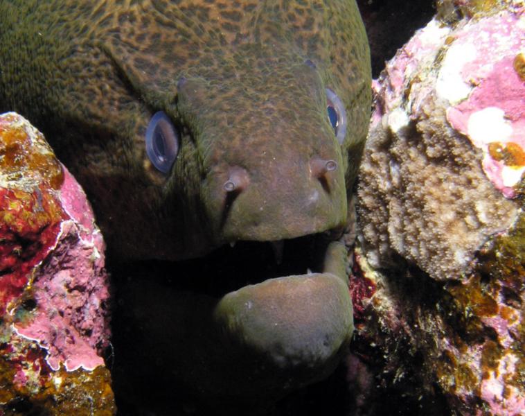 мурена, из крупных, если не брать акул, самый толстой виденной был группер - у меня голова в пасть влезла бы.... парни видели со стороны, как я с ней чуть не столкнулся нос к носу... я в это время в объектив смотрел и ее не видел... говорят, загубник изо рта у меня вывалился, когда мы глазами встретились.