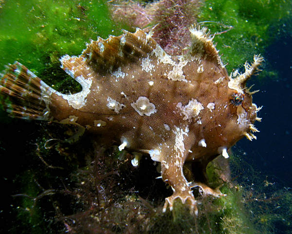 еще тот, кстати, хищник. рыба лягушка. похожа на кусок губки, но двигается резко и быстро, словно скачками.