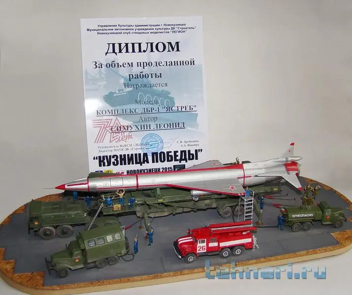 Три полка беспилотной стратегической разведки (БСР) были сформированы в 1966 году и фактически каждый год выезжали на учения с практическими пусками на полигон Государственного научно-испытательного института ВВС во Владимировке. У многих участников этих учений складывалось впечатление, что части БСР не приспособлены для настоящих боевых действий и являются своего рода "потешными полками", подтверждением чему и были ежегодные мероприятия с практическими пусками ДБР-1. Отчасти с этим можно согласиться. Комплекс БСР был очень громоздким. Для подготовки его к боевому применению требовалось много времени и было задействовано большое количество автомашин специального и общего назначения. Практические пуски ДБР, последние из которых проводились в 1977 году на полигоне под Хабаровском, куда одновременно прибыли эскадрильи из всех трех полков. По замыслу учений, основной целью которых было исследование боевых возможностей беспилотных самолетов-разведчиков по ведению воздушной разведки на дальневосточном театре военных действий. А как помните, в это время у нас с Китаем были не самые лучшие отношения.Первый пуск должна была осуществить 70-я оэбср (г.Хмельницкий), второй-эскадрилья из Мадоны (Латвия), третий-4-я огбср (г.Жовтневое, Белорусия). Маршрут полета был проложен от позиционного района на север до Якутска.Там самолет должен был выполнить разворот и лететь обратно. При первом пуске после нескольких минут полета самолет 70 оэбср упал в пойму Амура и взорвался , поскольку в баках оставалось еще 19 т керосина.При разборе происшествия комиссия пришла к выводу, что падение самолета произошло из-за приема бортовой аппаратурой радиокоманды на останов двигателя и приведение в действие системы посадки с отстрелом носовой части. Такая команда вполне могла быть выдана отрядом привода, который находился недалеко от стартовых позиций и занимался тренировками, во время которых проводилось включение аппаратуры. Пуск второго ДБР в назначенное время не состоялся, самолет так и остался на стартовой площадке. В процессе предстартовой подготовки отстрелилось полукольцо коллектора воздухозаборника, пуск был запрещен. Третий пуск выполнил стартовый отряд 4-й отдельной гвардейской эскадрильи БСР (технику этой эскадрильи я и выполнил в пластмассе).Старт и полет по программе прошел успешно, но видимо сказалось нервное напряжение от двух неудачных предыдущих пусков.Специалисты отряда привода, который был развернут в районе Комсомольска -на-Амуре, допустив ошибку, взялись за управление самолетом слишком рано и в результате посадили его с большим недолетом до намеченного района в тайгу на сопки.С помощью вертолета группа добралась до места посадки, причем пришлось еще пешком топать через бурелом, т.к. вертолет не смог приземлиться поблизости. Убедившись, что приземление головного блока прошло штатно и забрав фотопленку группа, уничтожив секретную аппаратуру, вернулась на вертолете к месту старта. Эти были последние в истории пуски ДБР-1, показавшие низкую жизнеспособность и большую уязвимость комплекса "Ястреб". В течении последующих 4-5 лет пуски БСР не проводились, а затем ДБР были сняты с вооружения.Все три эскадрильи в начале 80-х годов стали перевооружаться на новый комплекс беспилотной разведки ВР-2 "Стриж". По имеющейся в моем распоряжени
