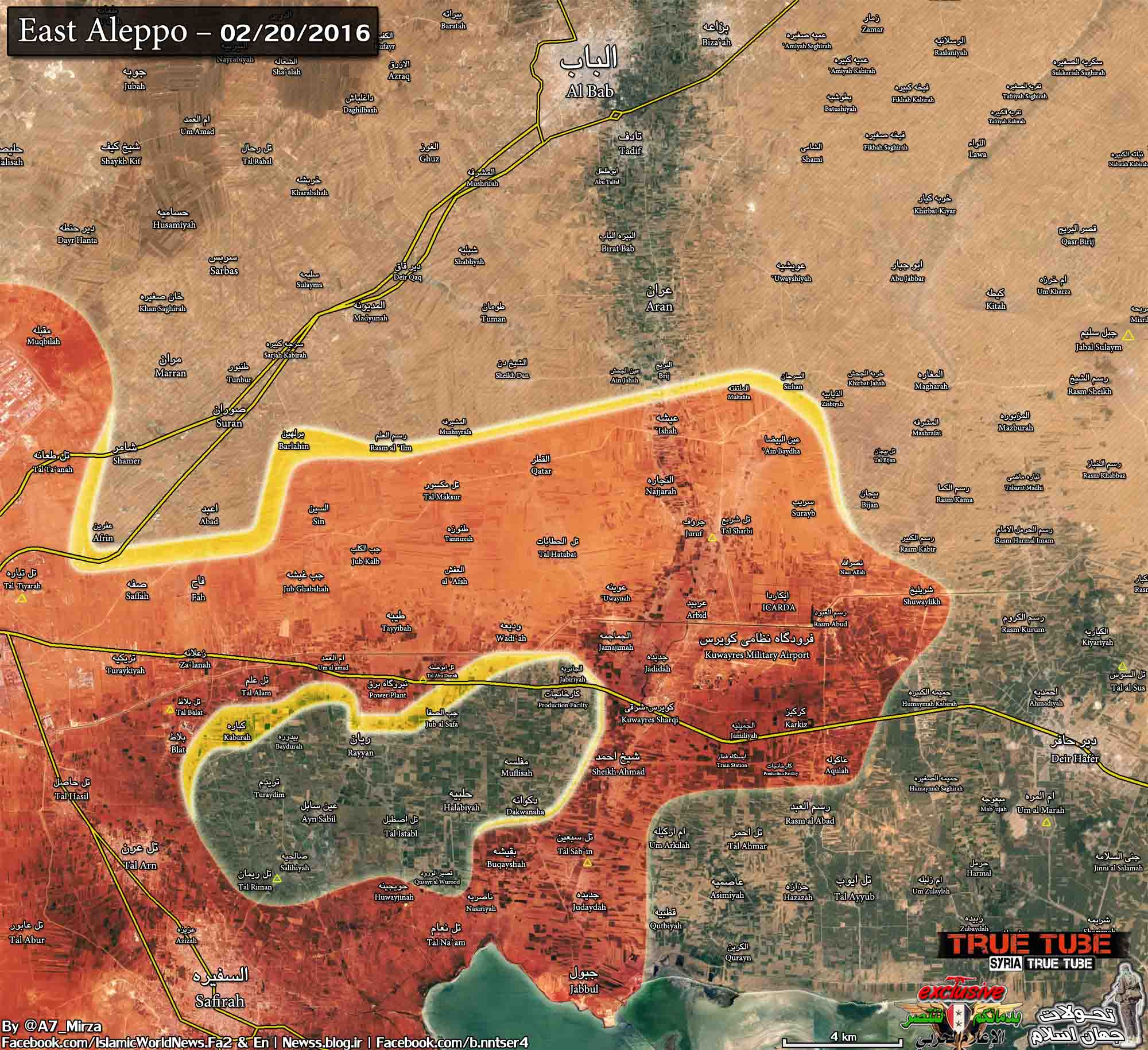 Вышеупомянутые деревни расположены непосредственно к югу от ТЭС Алеппо, которая в настоящее время под полным контролем Сирийских вооруженных сил после вчерашнего успешного наступления.