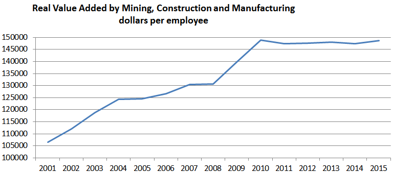 Взять например mining - буржуи нормальную производственную статистику уже сто лет никому не показывают, и не потому что у них ее нет - как там, информация правит миром. Поскольку сравниваются в общем случае выработка сейчас и раньше - то и сравнивать надо на основе человекочасов полностью. А туда например войдут - затраты на производство электроэнергии - куда дели??, или в шахте все кайлом и тележками с лошадиным приводом? Куда дели уже упоминавшихся сервисников и прочих аутсорсеров всех мастей? Куда дели все затраты на образование - и не надо говорить что 2 инженера обходятся обществу дешевле чем 3 рабочих. Транспорт - даже без логики понятно что шахты - они там где еще не все выкопали, а потребители этого сырья - там где построили. Да и куча чего еще. Как можете заметить все кроме первого - в чистом виде услуги. Которых 70% от всех трудозатрат США. Вот взяли такой кусочек и делаются выводы о всей отрасли с претензией расширения этих выводов на промпроизводство в целом, которое - вот незадача уже лет 20-30 больше чем наполовину по статьям услуг проходит.