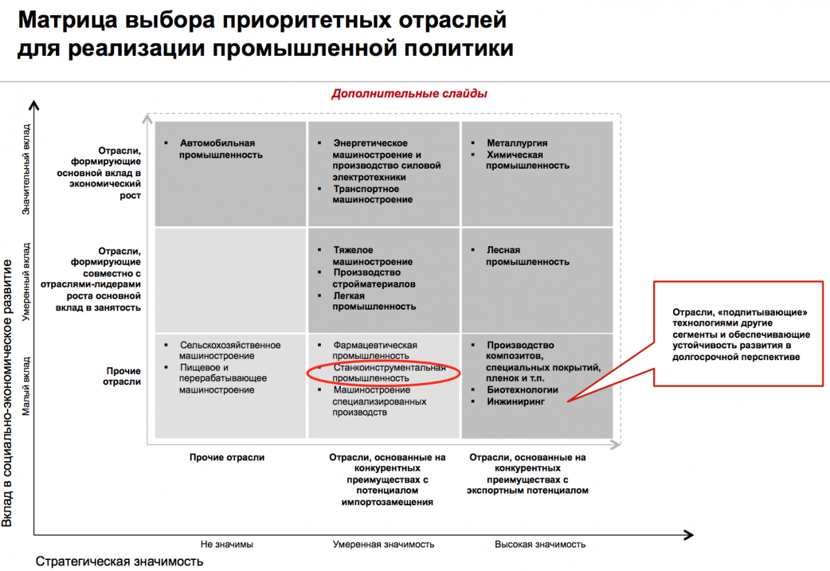 Невиданная щедрость правительства РФ связана с отношением к станкостроению как к второстепенной отрасли, дающей малый вклад в социально-экономическое развитие страны и имеющей умеренную стратегическую значимость.