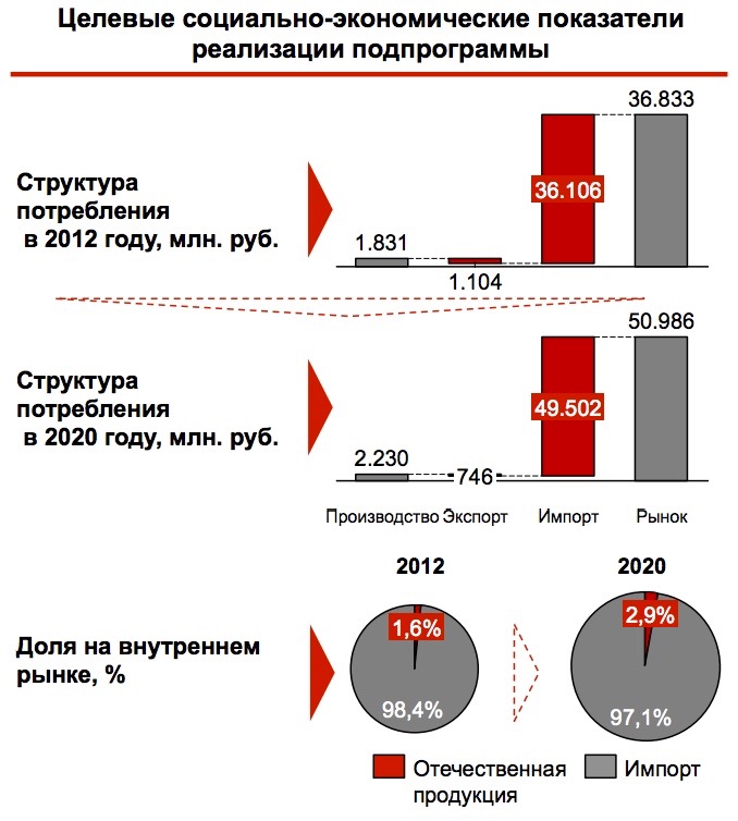 Как следствие такого подхода, целевым ориентиром реализации действующей подпрограммы развития станкоинструментальной промышленности является получение на внутреннем рынке доли в 2,9%.