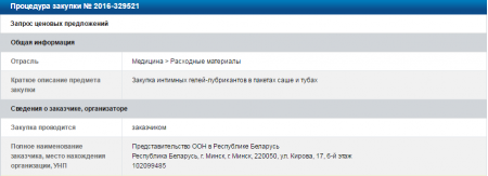 Первое апреля, или ООН в Беларуси что-то затевает? 0.5K 01:05 - 2/Апр/16 Goga (11 лет 3 месяца) Наткнулся тут на тендер. Интересно - к чему бы это? Источник: http://www.icetrade.by/tenders/all/view/329521
