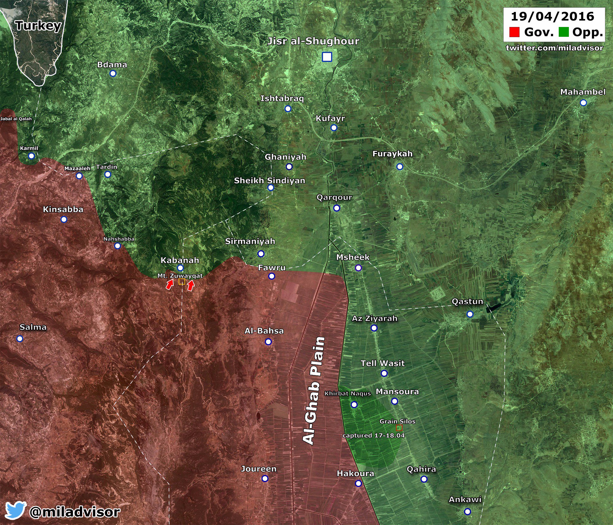18/04/2016 Сирийская группа Аль-Каиды "Джунд Аль-Акса" при поддержке Харакат Ахрара Аль-Шам и Джаиш Аль-туркмен начали крупное наступление на долине Аль-Габ в понедельник утром, затрагивающее единственные оставшиеся деревни под контролем Сирийской Арабской армии (САА) вблизи границы Хамы с Идлибом.