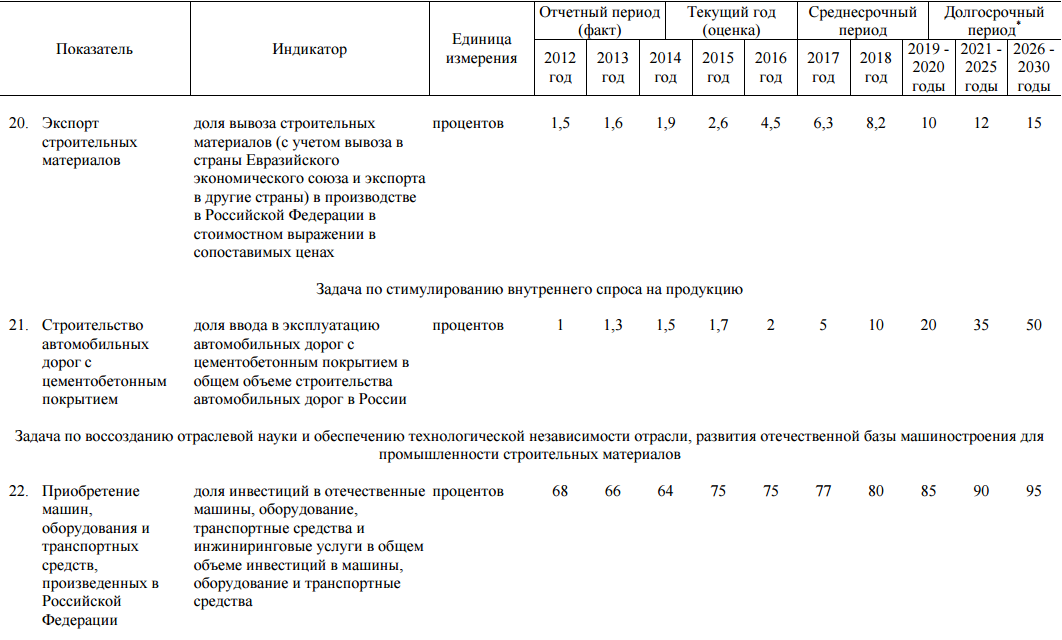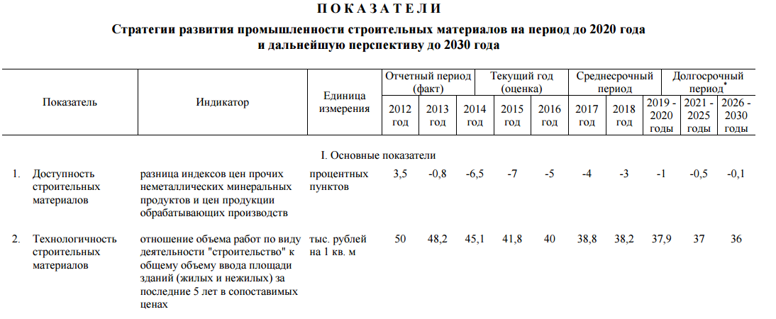 Распоряжением правительства Российской Федерации от 10 мая 2016 года № 868-р утверждена Стратегия развития промышленности строительных материалов до 2010 года и дальнейшую перспективу до 2030 года.