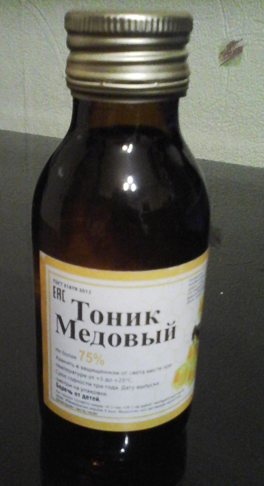 Состав препарата: спирт этиловый ректификованный из пищевого сырья (75%), вода, мед.