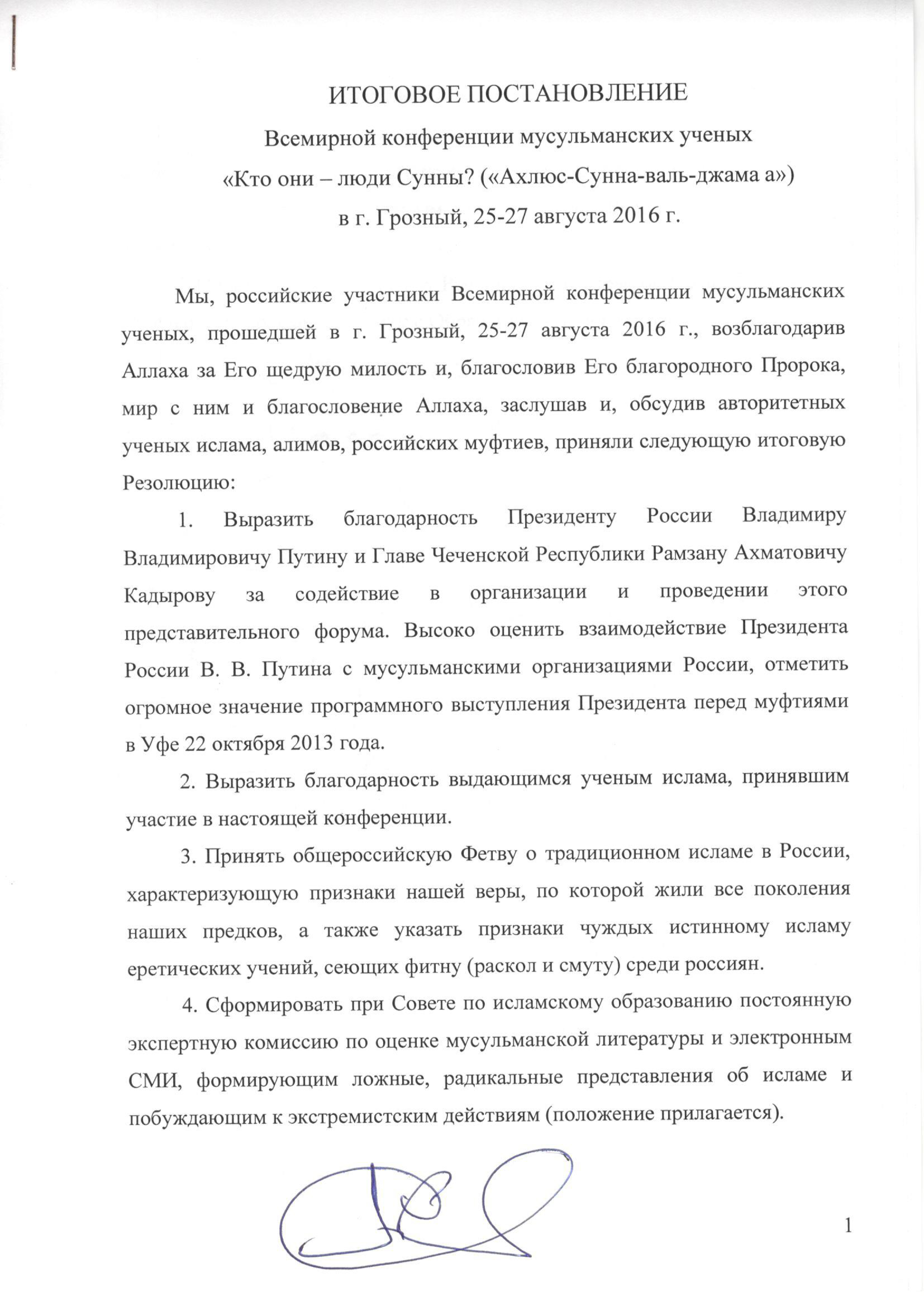«Кто они последователи сунны?» — фетва Всемирной исламской конференции в Грозном.