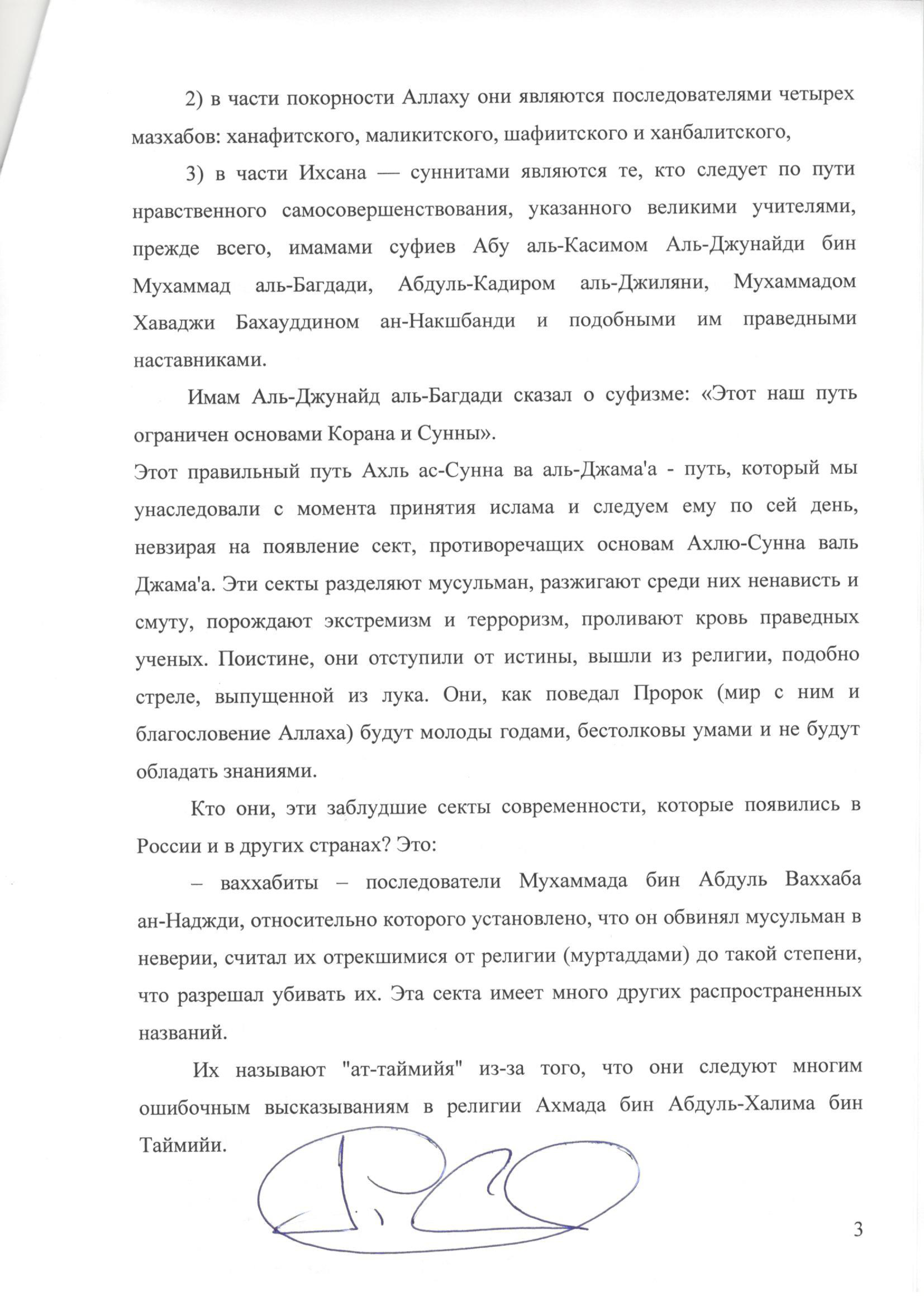 лист выше моего текста: "...секты разделяют мусульман, сеют среди них ненависть и смуту... они отступили от истины, вышли из религии... Кто они, эти заблудшие секты... Это: ..."