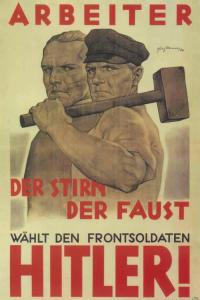 Также мы подчеркнем, что лозунги нацисткой партии не указывали конкретных путей решения стоящих перед немецким обществом проблем. Они призывали верить в Гитлера и нацистов, которые добились успеха и стали ведущей политической силой в стране, а следовательно, встав во главе страны, смогут привести к процветанию и Германию. Все это несколько напоминает многие предвыборные лозунги идущих в политику миллионеров — «Я разбогател, я сделаю богачами и вас».