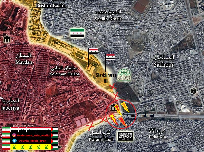 В случае полной зачистки района армейцы выйдут на ударные позиции для атаки на Айн-ат-Таль, где они смогут соединиться со своими боевыми товарищами из палестинской бригады "Аль-Кудс", находящимися сейчас в квартале Овиджа, и ещё сильнее зажать, таким образом, джихадистов из коалиции "Фатх Халеб" в тиски.