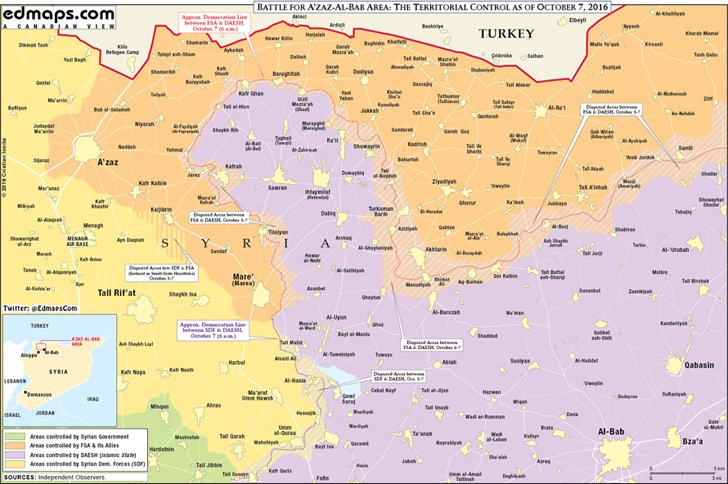 06/10/2016 Текущая ситуация на севере провинции Алеппо после взятия протурецкими боевиками населенного пункта Кабтан и сельскохозяйственных угодий Аль-Алаа, расположенных юго-западнее погранперехода Ар-Раи: