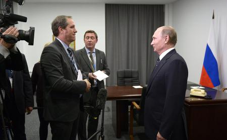 В.Путин: Знаете, мы не то чтобы отказывались, просто нам сказали, что основная причина, повод моей поездки в Париж – а именно открытие этого культурно-религиозного центра – он сейчас неуместен. Но если основная причина моей поездки в Париж неуместна, тогда, наверное, мы найдём другую возможность встретиться и поговорить по Сирии. У нас нет никаких ограничений в этом вопросе, мы открыты для диалога.