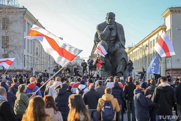 ///////Впервые с начала 1990-х годов бело-красно-белые полотнища развеваются в Минске открыто, и этому никто не препятствует/////