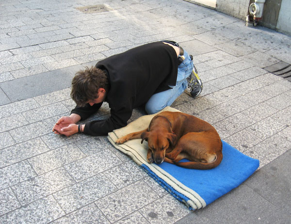 Вот в такой позе возле каждого храма в центре Мюнхена стояли немолодые женщины в черном - это было еще до наплыва бешенцев. Местные сказали - это румыны, они так попрошайничают.