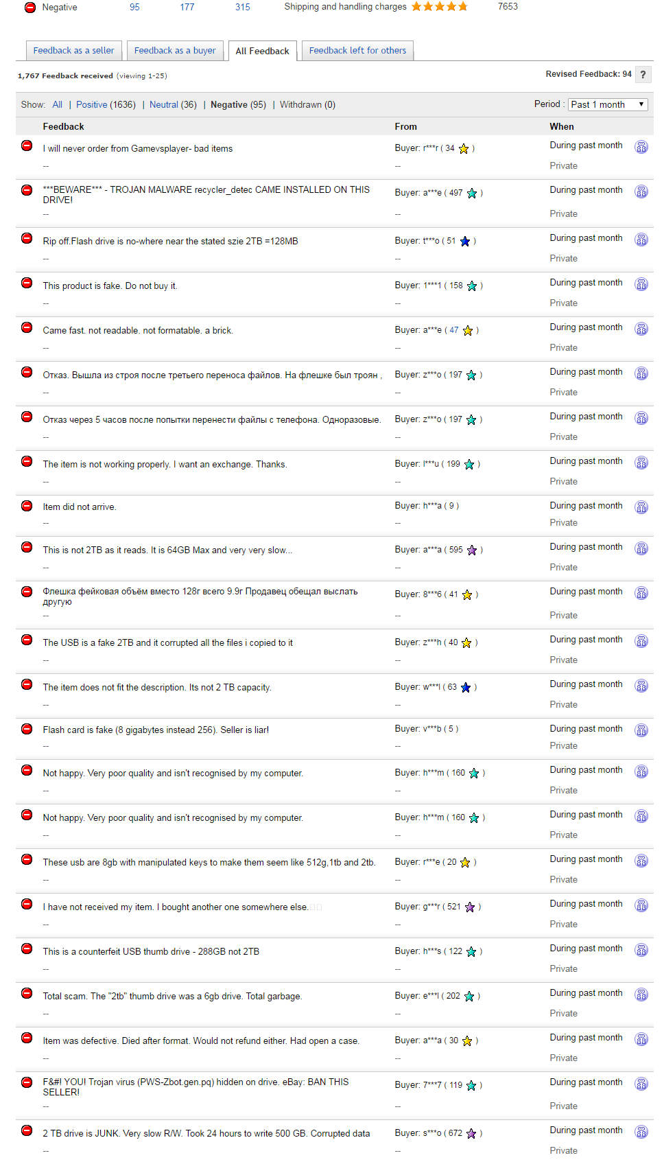 При этом страдает репутация продавца - его магазин просто снесут через пару дней - а продавец, который это сделал, имеет послужной список с 2012 года. Получается, в сети находится огромное количество "магазинов", которые торгуют только для виду и ждут "своего часа".