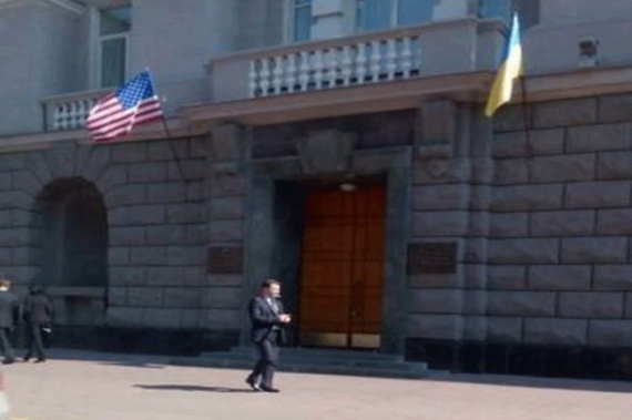И был тогда задан вопрос: а почему у входа в суперзакрытое и закреченное, по определению, учреждение вывешено два флага - украинский и американский?