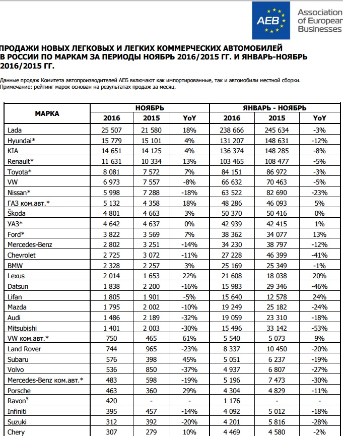 Вот данные aeb(так сказать первоисточник) : http://www.aebrus.ru/upload/iblock/94b/rus_car-sales-in-november-2016.pdf