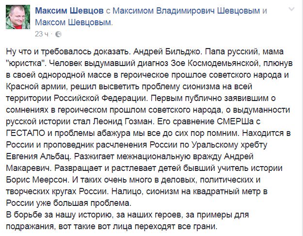 Вот-вот, говно оно и есть говно. Надо чётко отделять обычных людей от тех, кто возомнил себя акторами мирового сионизма.